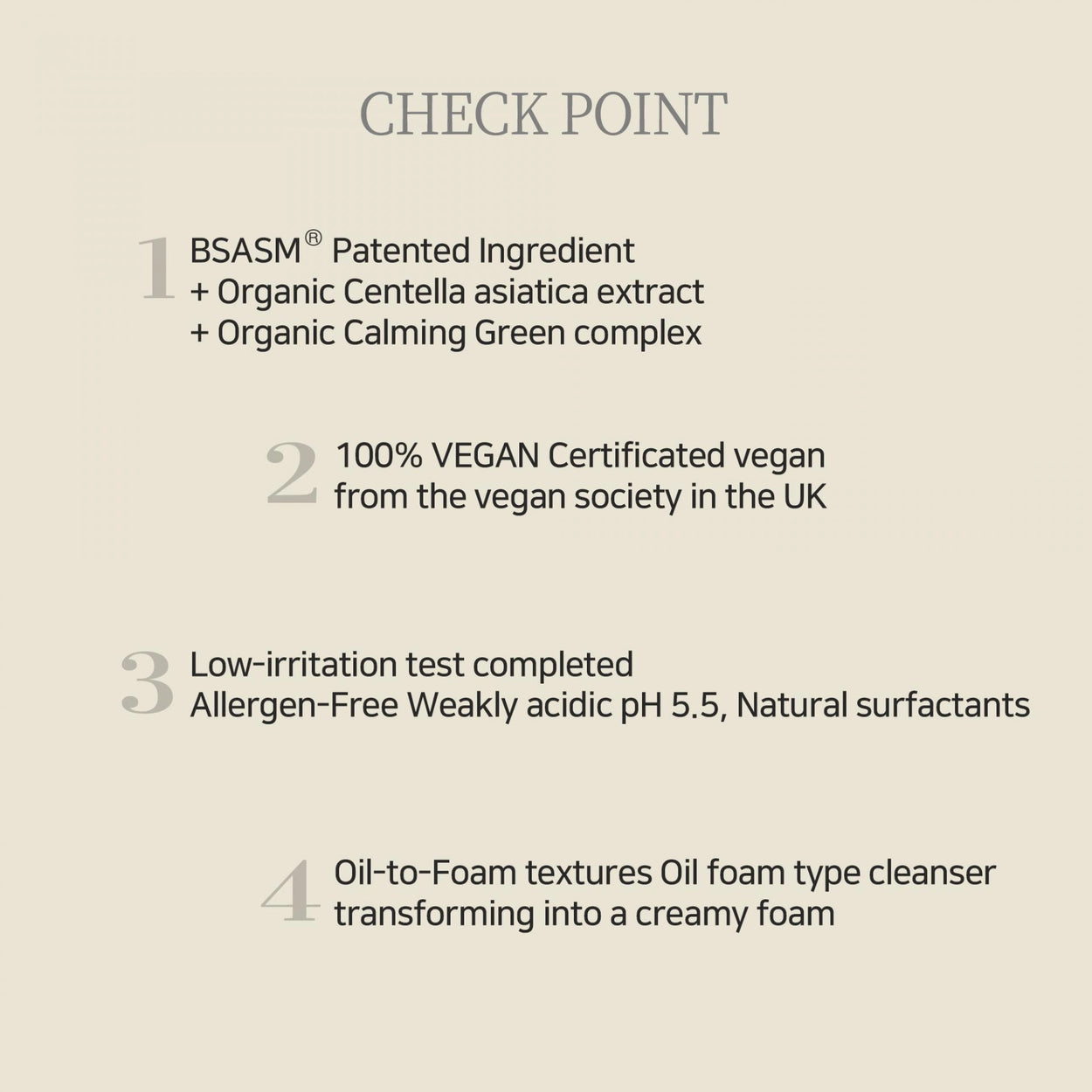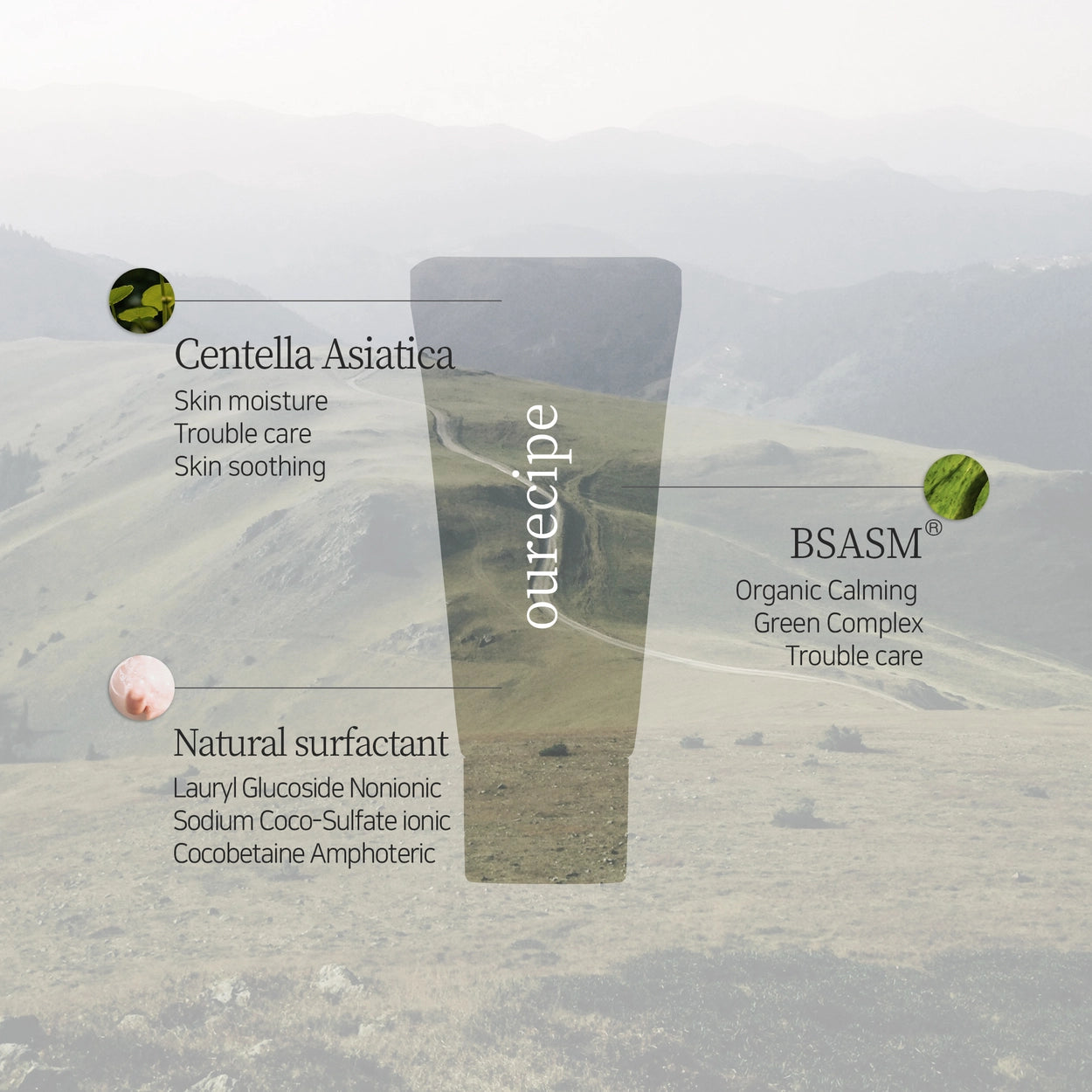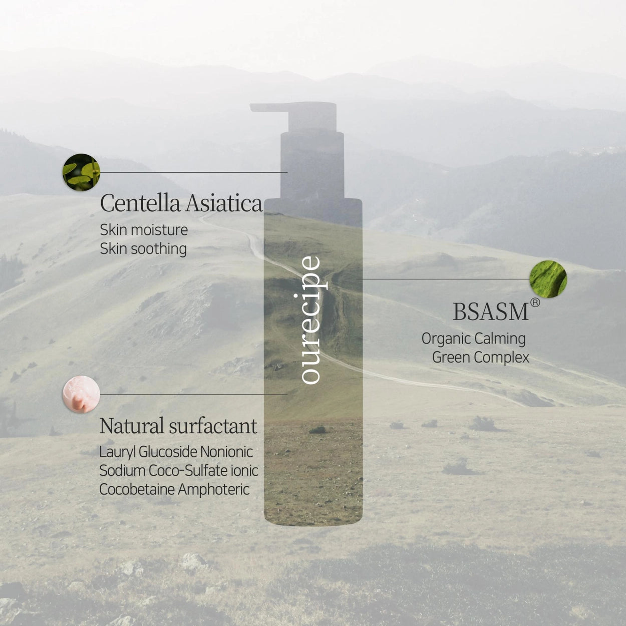 7 extractos vegetales: Centella Asiática, Raíz de Polygonum Cuspidatum, Raíz de Scutellaria Baicalensis, Hoja de Camellia Sinensis, Raíz de Regaliz, Flor de Matricaria, Hoja de Romero